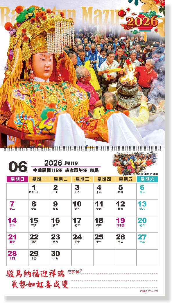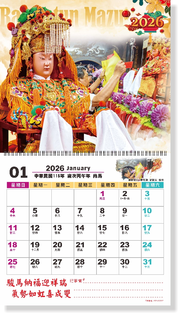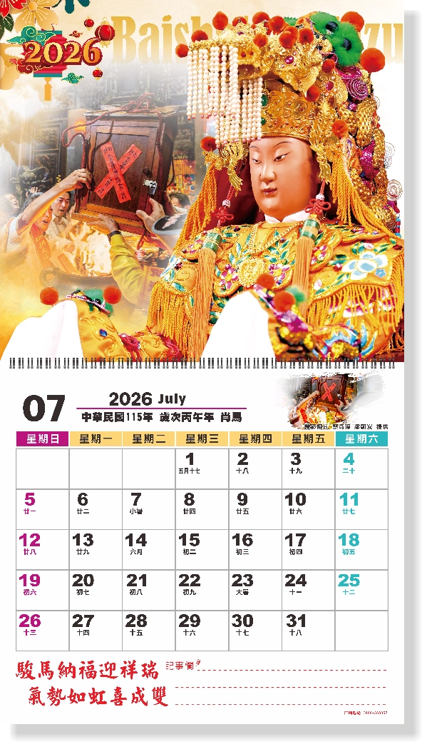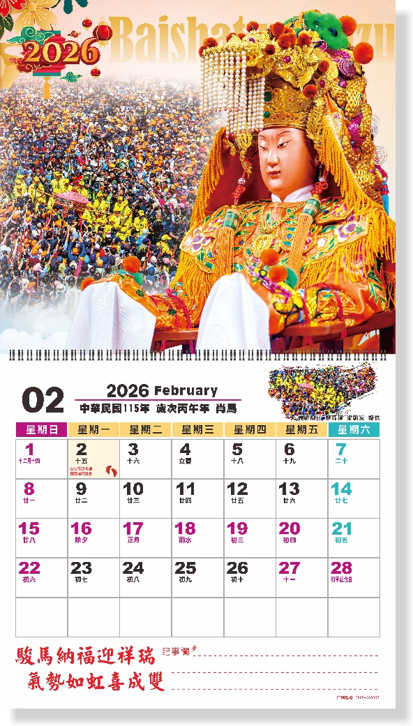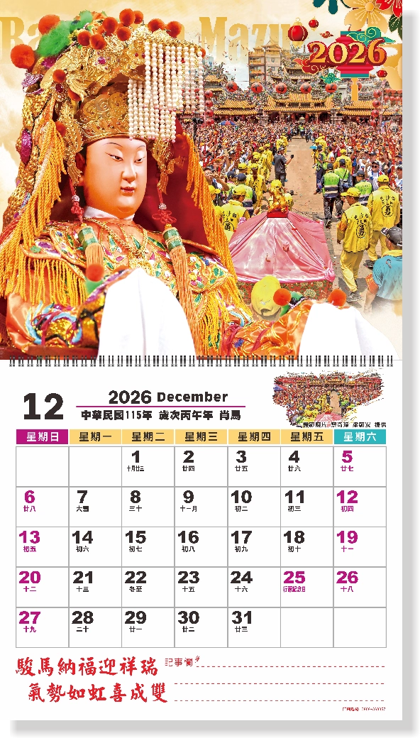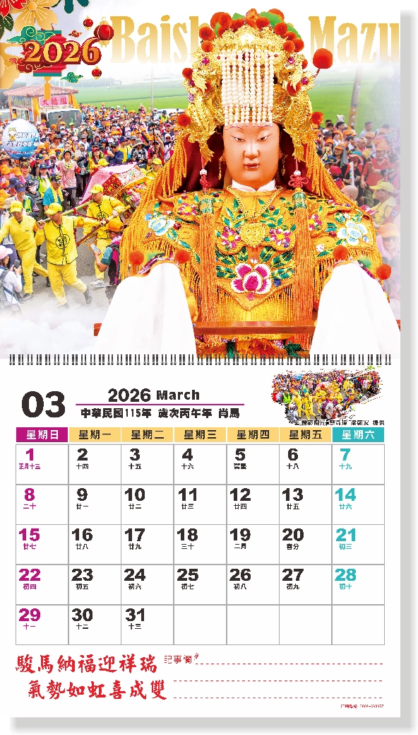 2026白沙屯媽祖六開月曆【五彩金蔥】