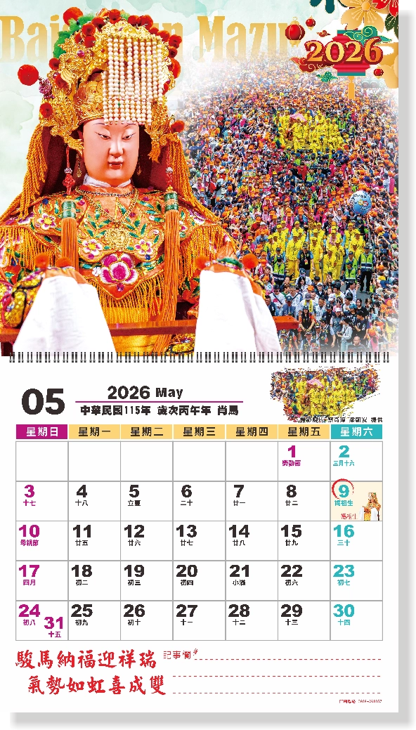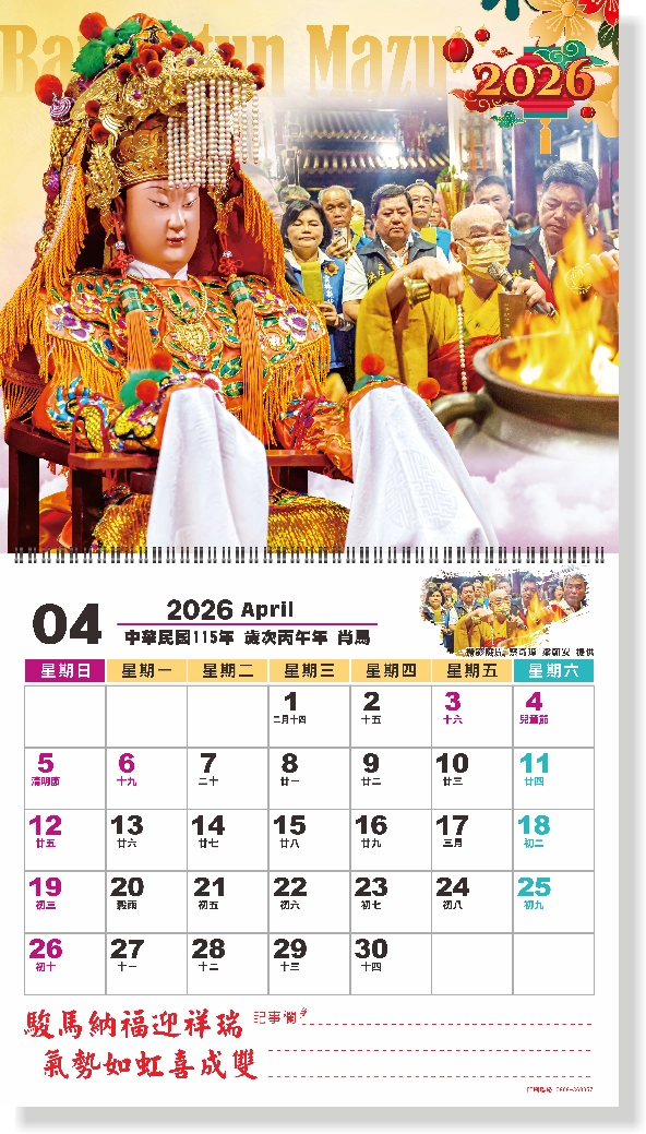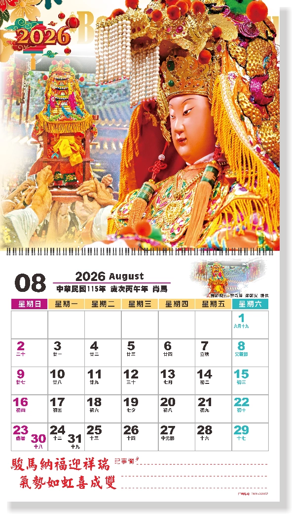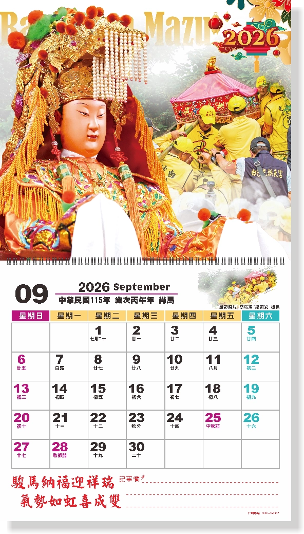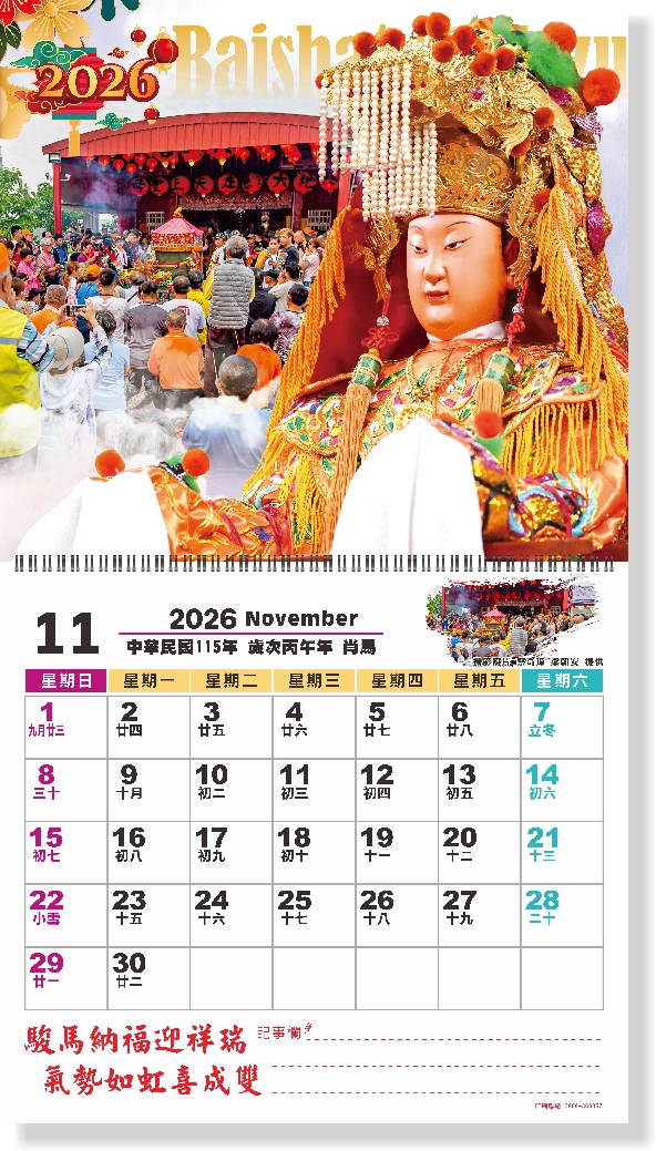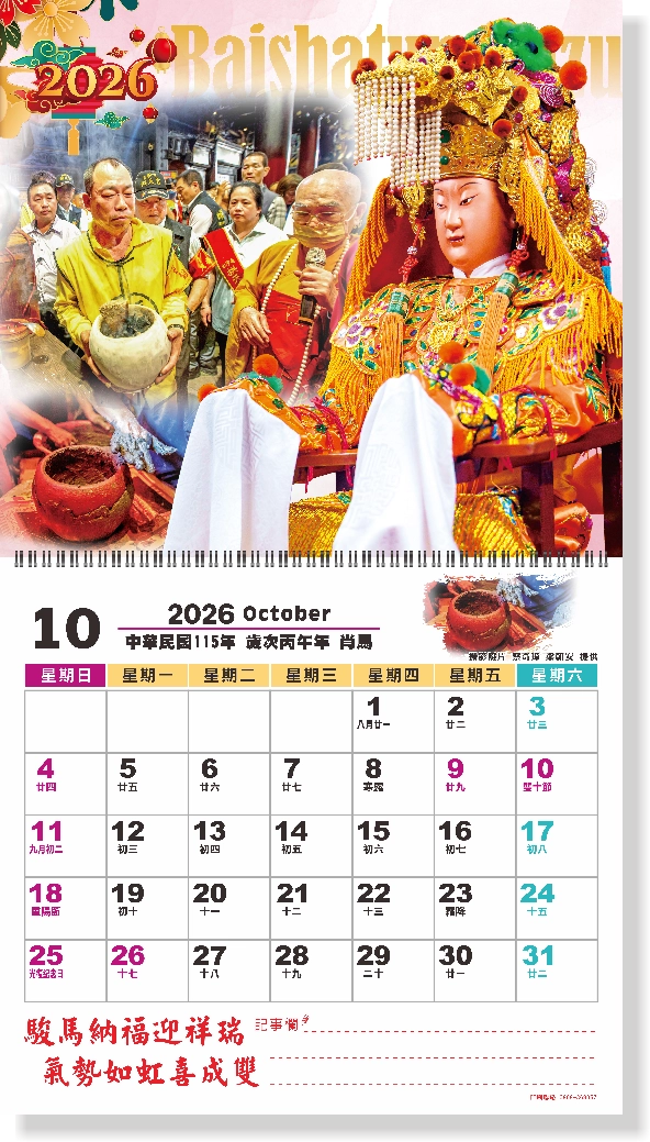 2026白沙屯媽祖六開月曆【五彩金蔥】